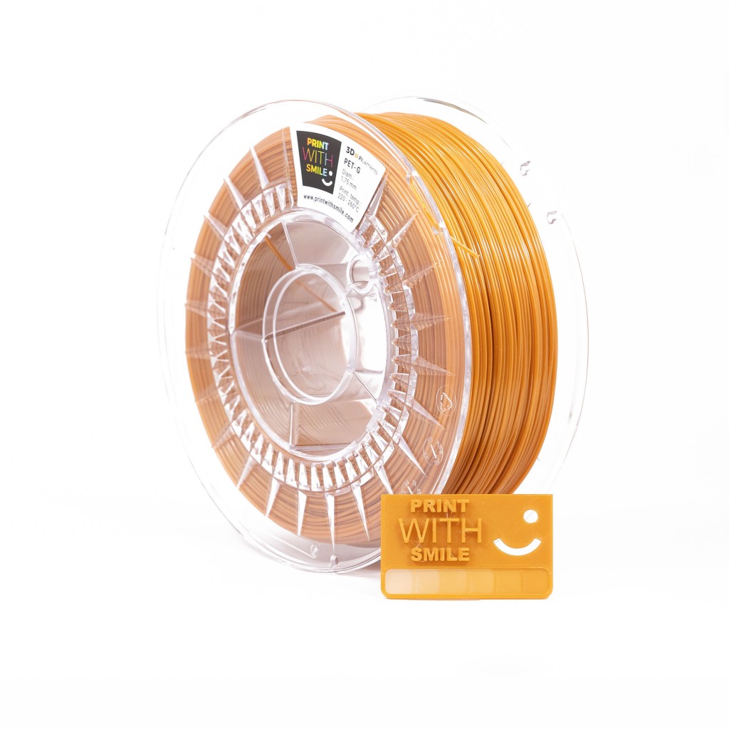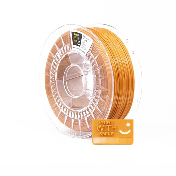 PET-G - 1,75 mm - GOLD Shine - 1 KgModified polyethylene terephthalate glycol - PET-G is an amorphous thermoplastic copolyester that has excellent strength and optical properties. PET-G filament is designed primarily for professional 3D prints with FDM technology. It‘s more flexible and softer than PLA or ABS filaments. It has very low shrinkage and excellent layer adhesion, making it suitable for large-area 3D prints. PET-G is highly chemically resistant to acids and produces no unpleasant odour during printing. That's why 3D printing with PET-G is so enjoyable! Another indisputable advantage of this filament is its recyclability.