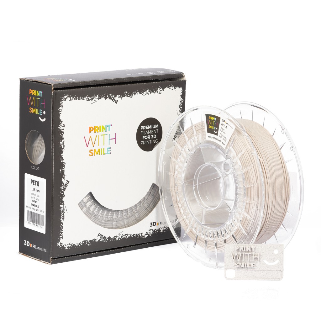 REFILL - PETG - 1 kg - MARBLE - 1,75 mmModified polyethylene terephthalate glycol - PET-G is an amorphous thermoplastic copolyester that has excellent strength and optical properties. PET-G filament is designed primarily for professional 3D prints with FDM technology. It‘s more flexible and softer than PLA or ABS filaments. It has very low shrinkage and excellent layer adhesion, making it suitable for large-area 3D prints. PET-G is highly chemically resistant to acids and produces no unpleasant odour during printing. That's why 3D printing with PET-G is so enjoyable! Another indisputable advantage of this filament is its recyclability.
