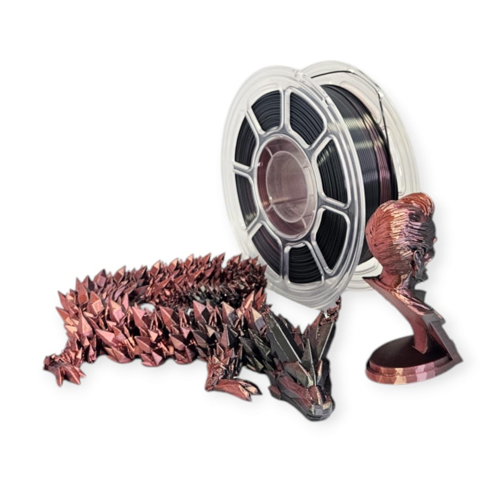 Filamenty PLA z prémiového materiálu. SILK efekt - dvoubarevná struna.
