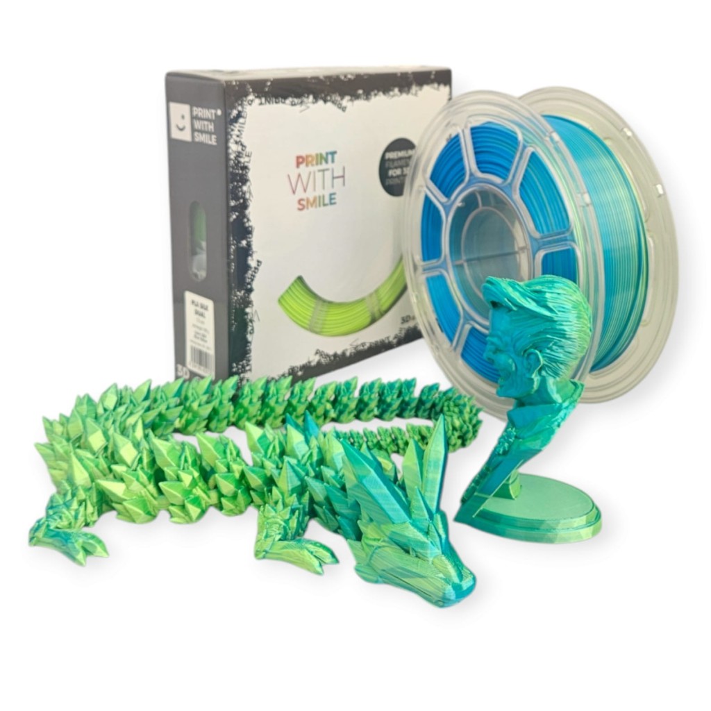 Filamenty PLA z prémiového materiálu. SILK efekt - dvoubarevná struna.