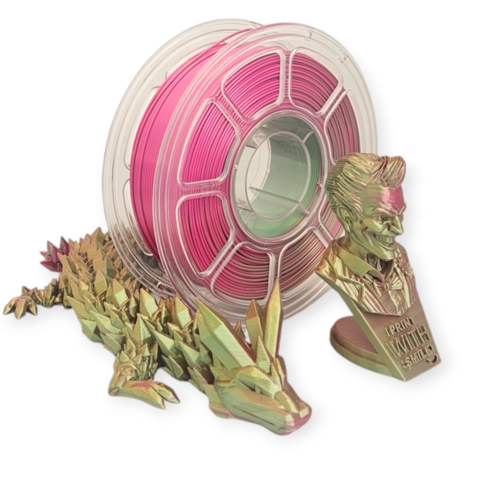 Domů 3D FILAMENTY TRIPLE SILK PLA - 1,75 mm - GOLD/GREEN/FUCHSIA - 1000 g
