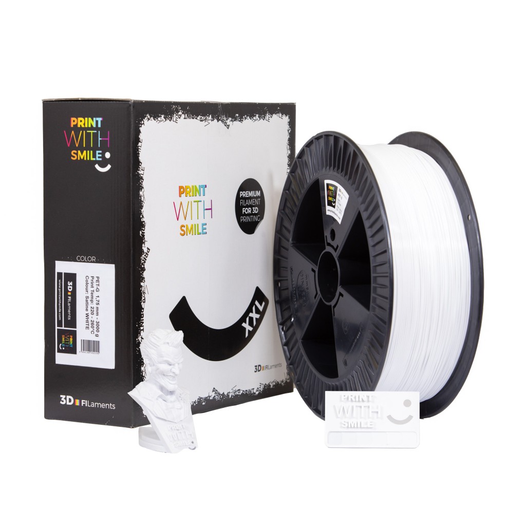PET-G - 1,75 mm - XXL Satine WHITE - 3000 gModifikovaný polyethylentereftalátglykolem - PET-G je amorfní termoplastický kopolyester, který se vyznačuje vynikajícími pevnostními a optickými vlastnostmi. Filament PET-G je určený především pro profesionální 3D výtisky s technologií FDM. Je pružnější a měkčí než PLA nebo ABS filamenty. Má velmi malé smrštění a výbornou přilnavost vrstev, díky čemuž je vhodný pro velkoplošné 3D tisky. PET-G je vysoce chemicky odolný vůči kyselinám a během tisku nevydává žádný nepříjemný zápach. I proto je 3D tisk pomocí PET-G tak příjemný! Další nespornou výhodou tohoto filamentu je jeho recyklovatelnost.