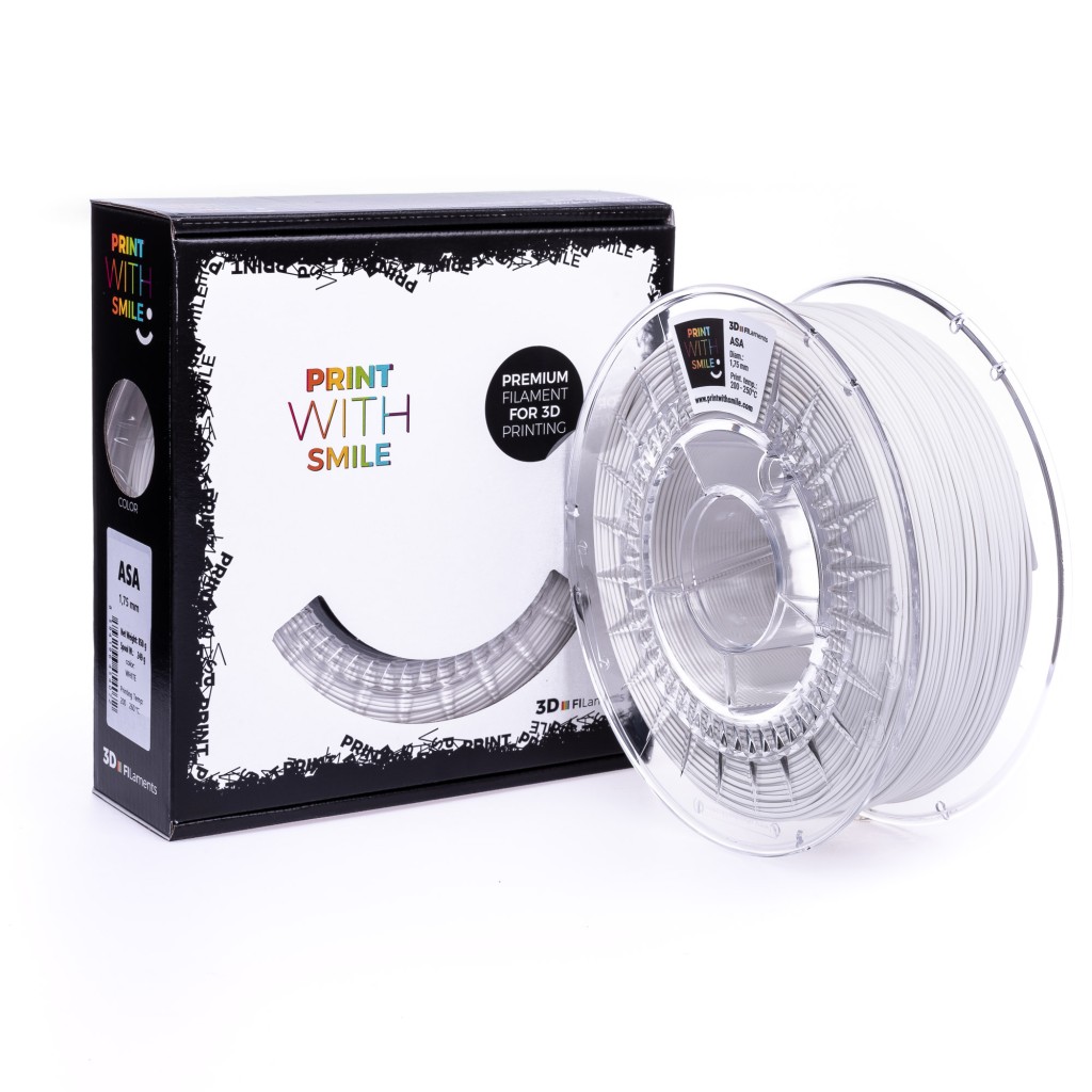 REFILL - ASA - 850 g - WHITE - 1,75 mmASA - (akrylonitril-styren-akryl) je termoplastický kopolymer, který se vyznačuje vynikající odolností proti UV záření, teplu, vlhkosti a praskání při zatížení. ASA je materiál ideální pro tisk detailů vystavených povětrnostním podmínkám. Kromě toho je ASA chemicky odolný, teplotně stabilní a navíc má antistatické vlastnosti. Podobně jako ABS je to materiál petrochemického původu, ale vzhledem k nedostatku butadienu v jeho složení se tento materiál vyznačuje výrazně menším smrštěním, což je mnohem snazší pro tisk.
