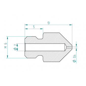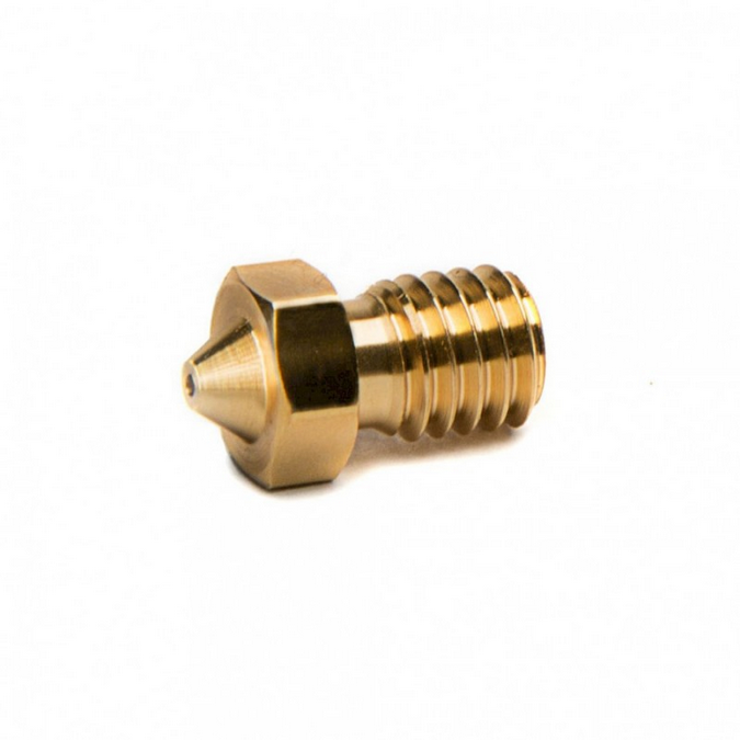 Kalená tryska pro 3D tiskárny s 1,75mm filamentem, kompatabilní s hotendem E3D V6 , Na výběr průměr trysky 0,25 - 0,8 mm. Závit M6.